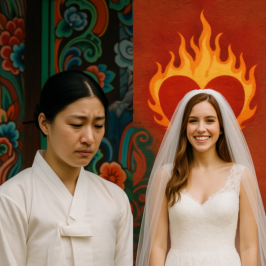 전통적으로 한국은 '백의민족'이라는 표현에서도 알 수 있듯, 흰색을 순수함, 청렴, 정의의 상징으로 여겨 왔습니다. 그러나 동시에 흰색은 장례식과 죽음을 의미하는 색으로도 사용되며, 조의와 슬픔을 표현할 때 널리 쓰입니다. 지금도 상복은 대부분 흰색 계열이며, 검은색은 상대적으로 덜 강조됩니다. - 서양에서의 흰색