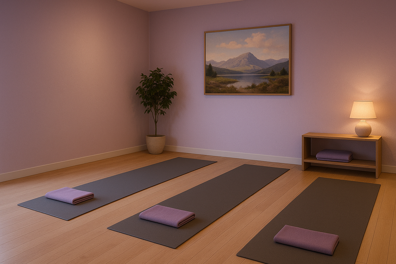 요가 스튜디오에서는 자연스럽고 은은한 색상을 사용하여 몸과 마음의 에너지를 균형 있게 유지하는 환경을 만드는 것이 중요합니다.
